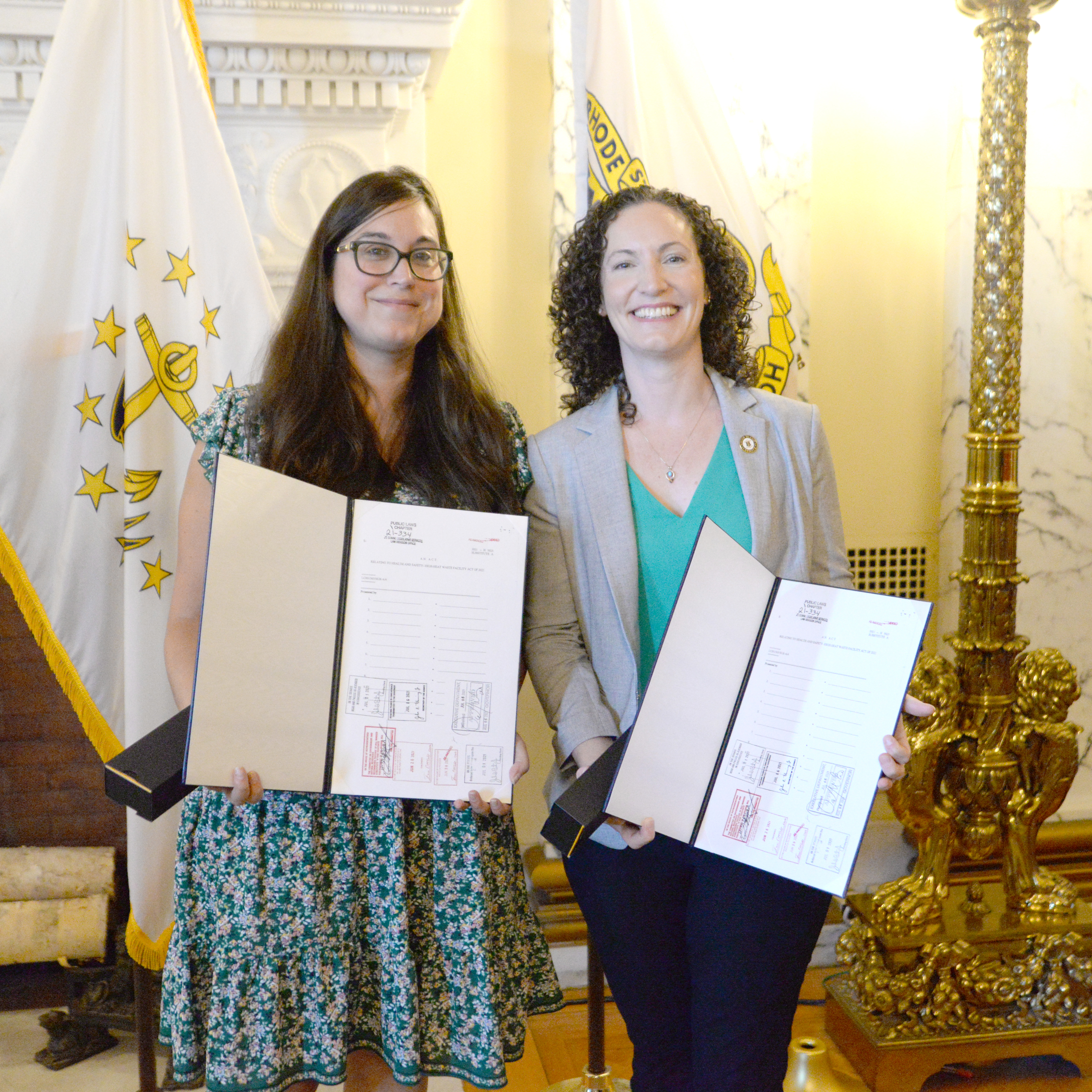 STATE HOUSE – Rep. Justine A. Caldwell and Sen. Bridget G. Valverde joined Gov. Daniel McKee today as he ceremonially signed their bill prohibiting new medical waste incinerators near residential neighborhoods, schools, nursing facilities and delicate environmental areas.