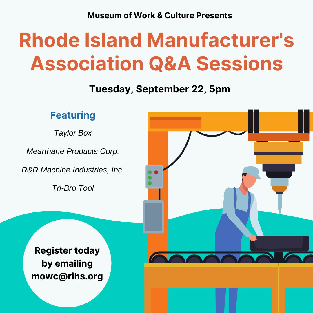 WOONSOCKET, R.I. – The Museum of Work & Culture kicks-off a virtual series of Q&As with the Rhode Island Manufacturers Association beginning Tuesday, September 22 at 5pm. The series is the lead-in to the annual MFG Day on Friday, October 2.