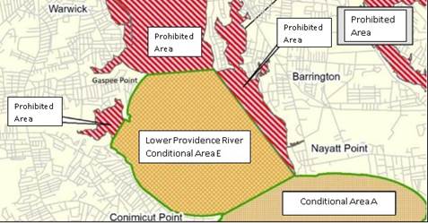 PROVIDENCE - The Rhode Island Department of Environmental Management (DEM) today announced the reclassification of two areas of the state's shellfish harvesting waters. As a result of continued water quality improvements in Narragansett Bay, the lower two miles of the seven-mile long Providence River known as Conditional Area E will soon be open for quahog sometimes spelled quahaug harvesting. Areas of the Upper Bay near Old Mill Creek in Warwick have also been reclassified based on water quality monitoring results.  The changes take effect at sunrise on Wednesday, May 26.