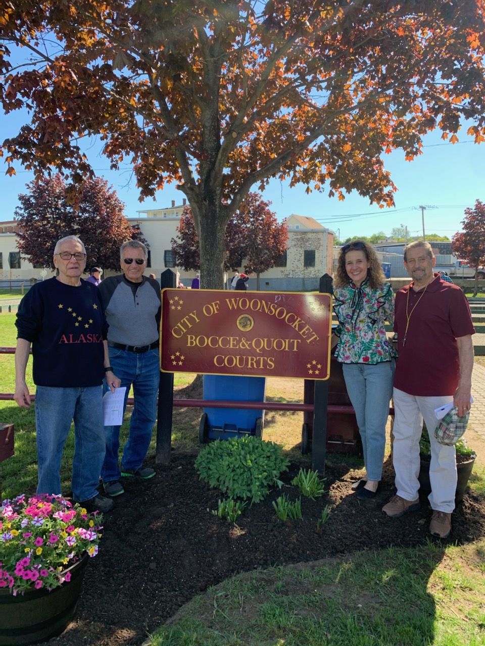 WOONSOCKET, R.I.: On Thursday, May 13th the Woonsocket Senior Bocce League held its 2021 season opener at the City bocce courts at Bouley Field on 420 Social Street before an enthusiastic crowd that included 64 players, families, friends, and curious onlookers. Mayor Lisa Baldelli-Hunt rolled out the ceremonial first ball "jack" a record four times which was followed by spirited competition involving two leagues (American and National) of eight four player teams playing three games each.