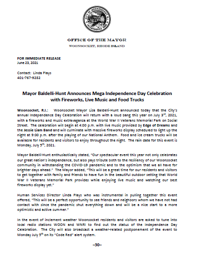 Woonsocket Mayor Announces Mega Independence Day Celebration