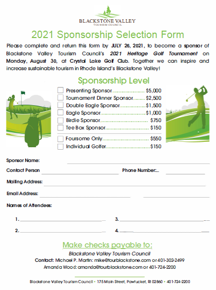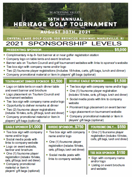 16th Annual Blackstone Valley Heritage Golf Tournament August 30, 2021
