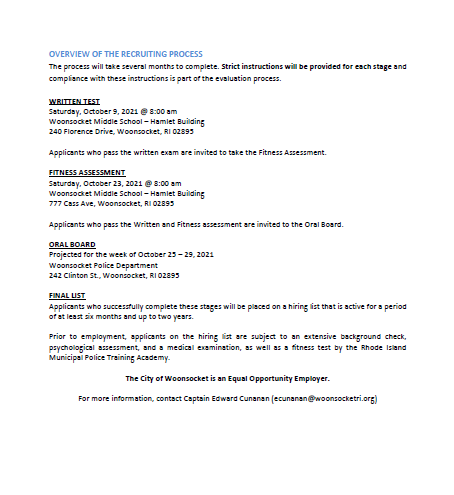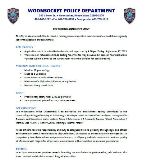 Woonsocket Police Department Now Hiring