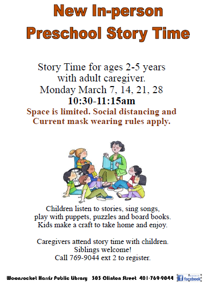 Upcoming Programs for Children at Woonsocket Harris Public Library