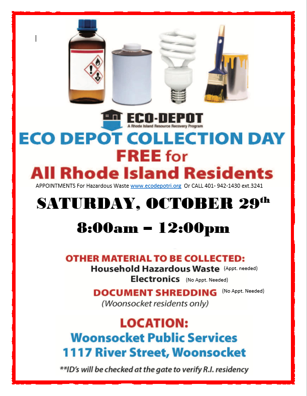 Woonsocket's Eco Depot is scheduled for Saturday, October 29th from 8am – 12pm
