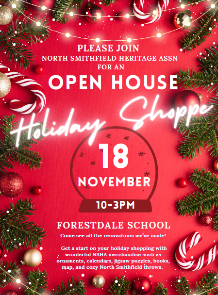 The North Smithfield Heritage Assn invites the public to view the renovations we’ve made from 10 am to 3 pm, on Saturday, November 18 at the Forestdale School, 190 School Street, North Smithfield, RI.